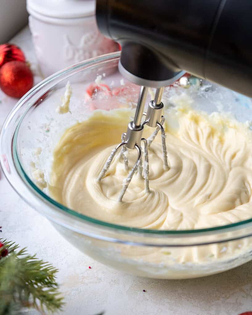 - In a large bowl or the bowl of a stand mixer, beat 1/2 cup butter and 1/2 cup cream cheese on medium speed with a hand mixer or whisk attachment until smooth.