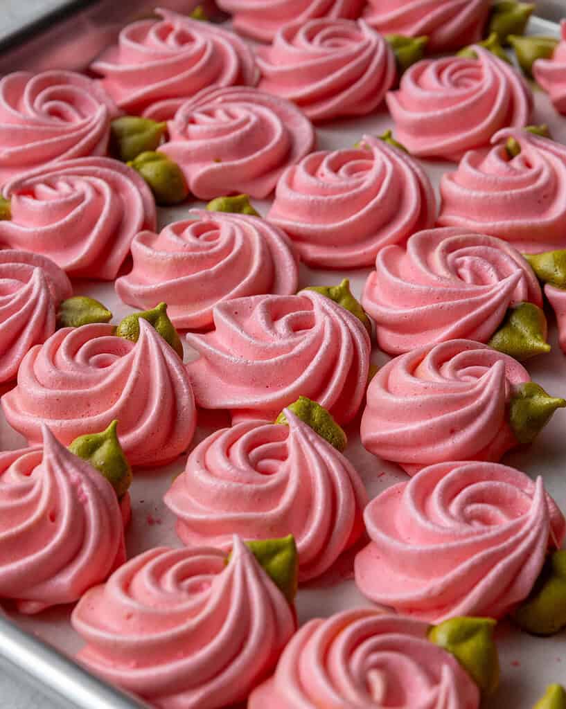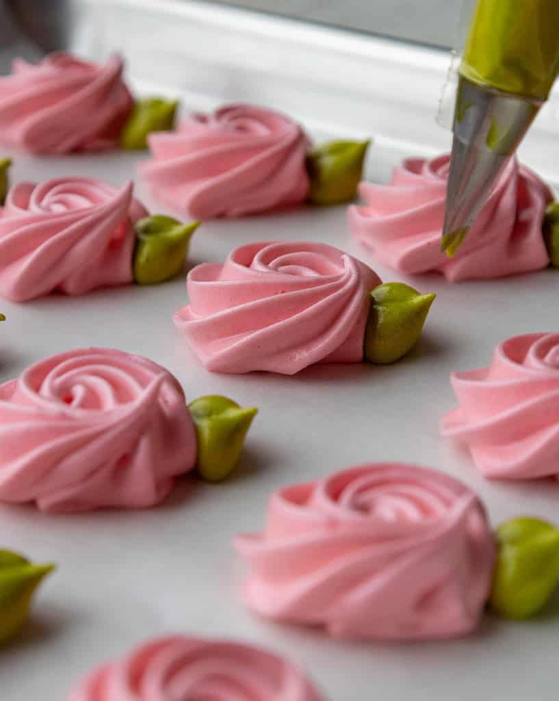 These meringue roses bake up so beautifully! They’re light, airy, and perfectly crisp.